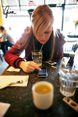 Our version of If You Give a Mouse a Cookie: It all started just to get back at Lindsey's mom and sister for going to get donuts without her. She got jealous and so we planned a trip to the Donut Whole. We kept working and lost track of time, and all of a sudden, it was lunch time. So we changed plans. We would go get lunch, then go get donuts. Well, I'd bought frames for pictures for my living room last night, so then I wanted to take my camera so we could stop at some urbany places along the way so I could take more photos for my collection. Due to all of this, we ended up having a camera while we ate lunch at Hana Cafe.